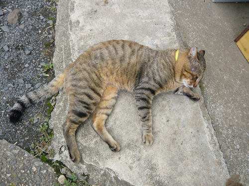 家内の実家の馬門の家に迷い猫「ミーコ」が居ついてから、一ヶ月以上が過ぎました。トラとミーコの二匹の猫の今の状態はというと、どうもトラはミーコのことが苦手らしく、家の中には餌を食べるときしか入ってこなくなってしまいました。夜も、前の物置小屋で寝ているようです。ミーコはといえば、ずいぶんとなれてきて、特に馬門ばあちゃんのことは大好きなようで、馬門ばあちゃんが野良仕事から帰ってくると、ミャオミャオと可愛らしい声を上げて、馬門ばあちゃんの所によって来ます。時折訪ねる私には、まだ警戒心があるようで、座敷に寝転びながら本を読んでいる私を遠巻きに見ています。